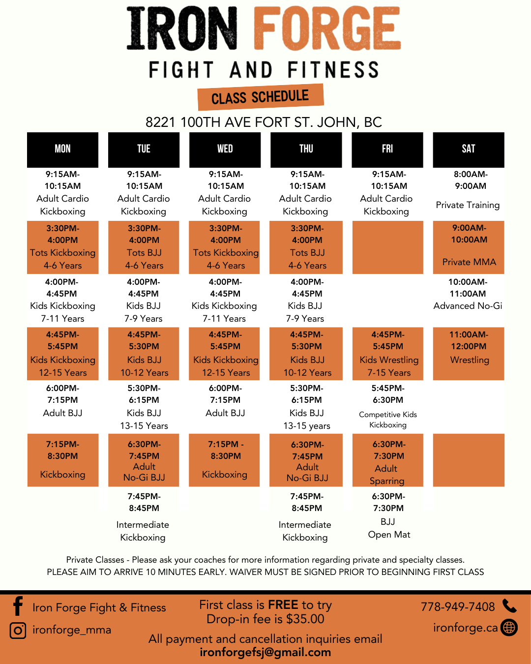 Class Schedule (All Classes Available)